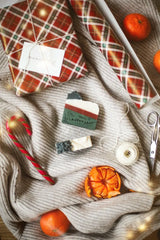 Sapone artigianale di design con profumo di aghi di pino e spezie natalizie.