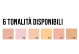 Le sei tonalità disponibili sono state pensate per tutte le esigenze, si fondono perfettamente con la pelle e possono essere applicate sia sulla zona contorno occhi che sul viso.