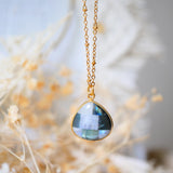 Collana in acciaio inossidabile con labradorite «a scacchiera» e pietra di luna che misura circa 19 mm.